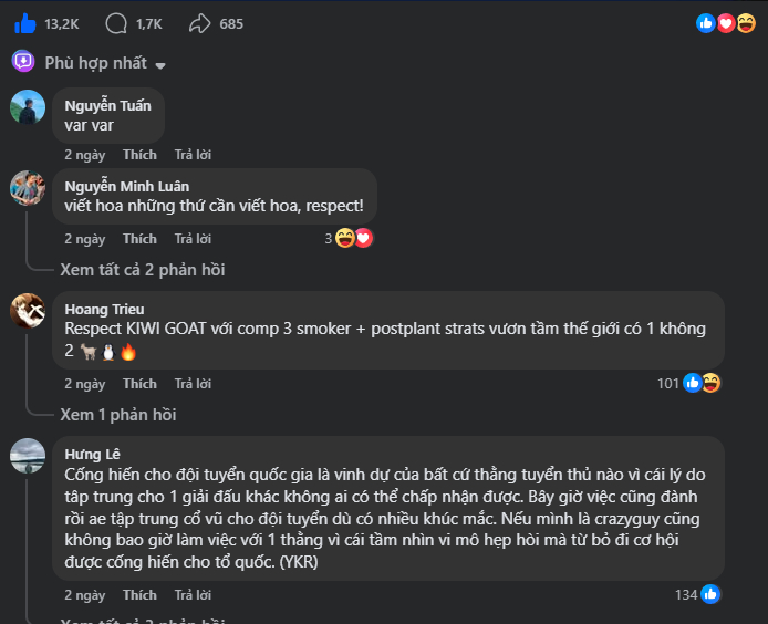 Sự lên tiếng của Crazyguy giống như một mồi lửa ném vào thùng thuốc súng đã chực chờ sẵn. Khắp các diễn đàn, hàng ngàn bình luận đồng loạt đứng về phía nam tuyển thủ với thông điệp quen thuộc “No Crazyguy No Party” và “Cổ điển, tôn trọng”. Cộng đồng mạng liên tục đem chiến thuật 3 smoker từng thất bại thảm hại của Kawa tại bản đồ Split ra làm trò cười, cho rằng vị HLV này đang kéo lùi trình độ của một lứa tuyển thủ tài năng tại FS. Nhiều game thủ bày tỏ sự thất vọng tột cùng trước thông tin FS dùng Đội tuyển Quốc gia làm công cụ mặc cả tài chính, gọi đây là những hành vi chà đạp lên tinh thần thể thao. Hầu hết người hâm mộ đều khẳng định sự thẳng thắn của Crazyguy là cần thiết để làm trong sạch môi trường Esports Việt, bởi đã đại diện quốc gia thì cần một vị thuyền trưởng có tầm và có tâm.